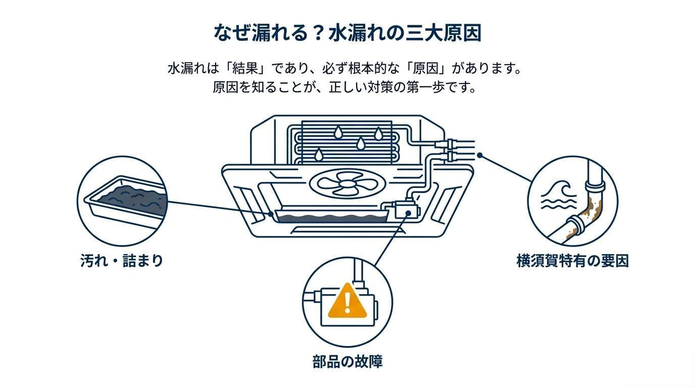 なぜ漏れる?業務用エアコン水漏れの主な原因